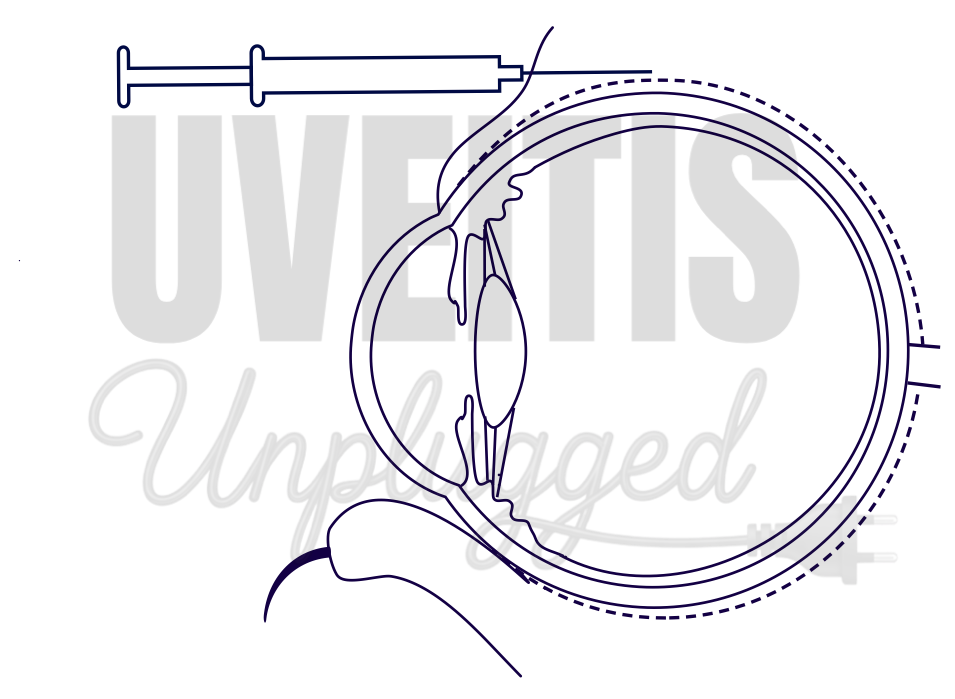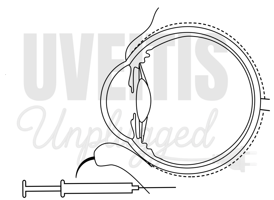 - Sub-Tenon injection – beneath Tenon’s capsule (anterior or posterior)