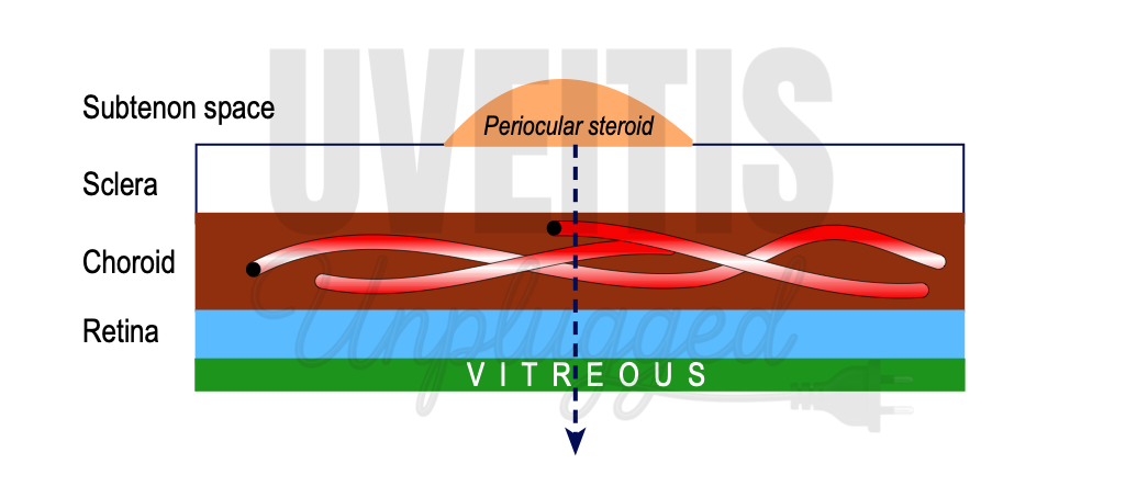 - After sub-Tenon injection, the drug must diffuse across the sclera, choroid, and retinal pigment epithelium to reach the retina.